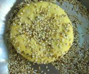 <br/>将饼胚沾上芝麻。</li><li>6