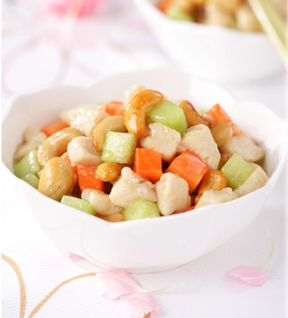 原料:鸡胸肉一块、西芹一棵、胡萝卜一小段、腰果若干(我用的是即食腰果)