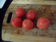 <br/>在西红柿底部切十字刀,用沸水烫2分钟,撕去西红柿皮。</li><li>6