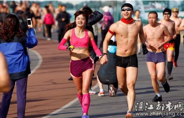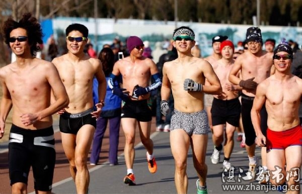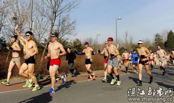 2月26日,100多名跑步爱好者齐聚北京奥林匹克森林公园参加首届光猪跑,光猪们只穿内衣(男一件女两件,可佩带其它御寒配件)完成5公里长跑,希望以此打破内衣跑吉尼斯世界纪录。