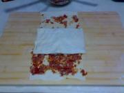 <br/>肉铺好后用刀在面皮的上下各切两刀后从一端开始叠。</li></ul><ul><li>7