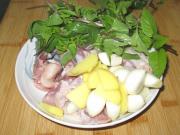 <br/>鸡切块,姜切片,大蒜头剥出整颗,九层塔拣嫩头冲洗干净。</li><li>2