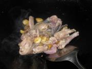 <br/>倒入四勺黄酒煮开后改小火慢炖十分钟。</li></ul><ul><li>7
