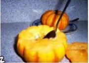 <br/>把南瓜洗净,切掉上面的小盖子,将南瓜壤用勺子挖掉。</li></ul><ul><li>7