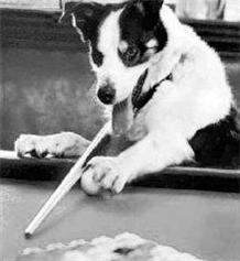 <br> 现年10岁的英格兰牧羊犬“蓝色”自从6个月时便跟随主人模仿台球动作,如今竟无师自通地学会了打台球。由于球技高超,他已经成了远近闻名的“台球神犬”。“蓝色”是一条博德牧羊犬,它的主人介绍,“蓝色”对台球怀有天然的兴趣。每当主人在酒吧举杆打球时,“蓝色”便会聚精会神地在一旁观察。随着个头的长大,“蓝色”无师自通地学会了打台球。它总是用两条后腿站立,抬起两条前腿伏在球案边上认真瞄准,最后用前爪猛地撞击一下主人事先为它架好的球杆。每当彩球应声落袋,“蓝色”都会兴奋地围着球桌跑几圈。 <br> <br> <br>