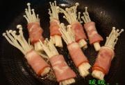 <br/>金针菇剪掉根部洗干净,1块培根能卷2个,卷好后用牙签固定住。1包金针菇一共卷了8个,用了4块培根。</li><li>2