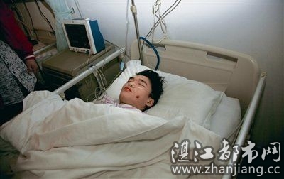 受伤的阿辉躺在病床上,医生说完全恢复至少要一年