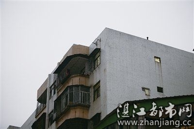 该男子就是从七楼厕所窗户(图中红圈处)坠下,落在五楼铁皮屋顶上 本版图片均由东莞时报见习记者 谢匡时 摄