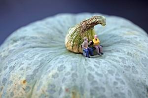 <br> 南瓜(这个应该是南瓜吧)被放大后,摆个长凳,不失为一个聊天的地方。看两位老人家聊得多惬意。<br> <br> <br>