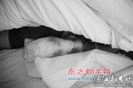 昨天早上,在惠东人民医院,被害人小黄经过抢救已经脱离生命危险,白布包着颈部,剪刀剪过的右手打上了夹板,肋部还插着两根管子,用来检查体内是否还有淤血。