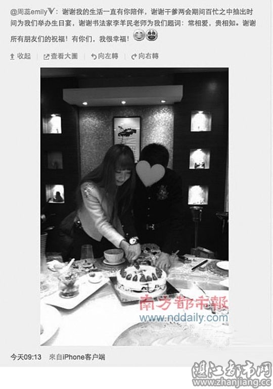 昨日,模特周蕊发布的这条庆生微博引发网友猜测。