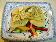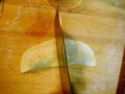 5、假如制作油炸的馄饨,最好做成花边形较好,配以蔬菜色拉,外带蘸料,蘸料可选用红白沙司即可。