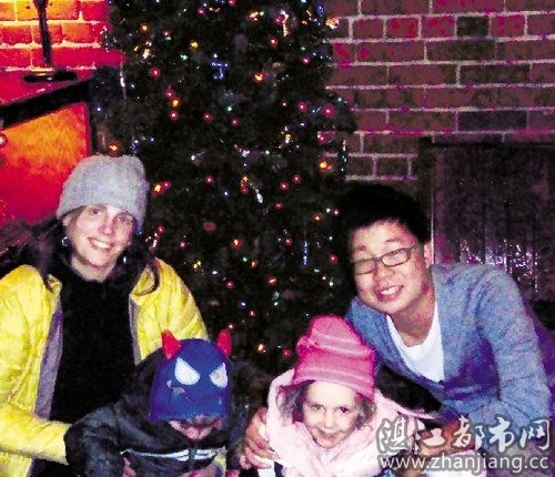 去年圣诞节期间,沈慧刚去看望朱利安(左二)。左一为朱利安的母亲,右二为爱丽斯。右上图为沈慧刚和朱利安的合影。