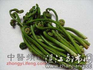 吃蕨菜能起到清热滑肠、降气化痰、利尿安神等祛病养生功效。但干蕨菜或用盐腌过的蕨菜在吃前最好用水浸一下,使它复原。常见的吃法有滑炒脊丝蕨菜、蕨菜扣肉、凉拌蕨菜等。