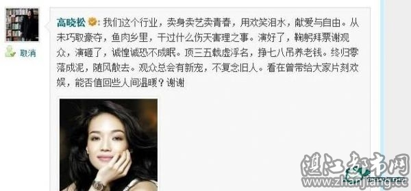 针对舒淇删除并退出新浪微博事件,高晓松发微博称: