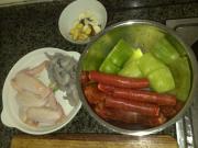 <br/>之后加入水,以淹没材料为主。中火烧10分钟左右,放入火腿肠。</li><li>6