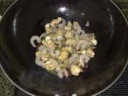 <br/>倒油,8成熟下鸡肉块,翻炒60秒后加入调料,炒出香味后放进虾仁。</li></ul><ul><li>4