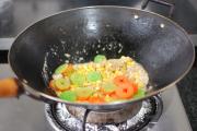 <br/>再把事先炒好的鸡肉粒倒入翻炒。</li><li>9