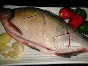 <br/>把鱼洗净 在鱼的两侧分别划十字花刀,用盐 料酒 生姜 蒜 葱腌至入味 青红椒切成圈</li><li>2