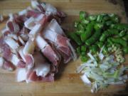 <br/>醒冰的腊肉切成片,青椒我图方便就直接切成了筒状,生姜切末,葱白切碎。</li><li>2