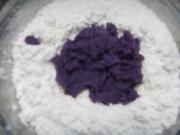 <br/>紫薯连皮蒸熟后,趁热去皮后压成细泥。.</li><li>2