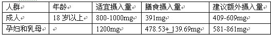 <br><br>所以如表所示,中国营养学会推荐的孕妇和乳母的钙适宜摄入量为1200mg,而全国营养调查表明,每天膳食中人均摄入钙量仅为339-619mg左右,与中国营养学会推荐适宜摄入量相差大约581-861mg。因此,仅靠日常饮食摄入,远远不能满足孕产期妈妈对钙质的需求,因而需要额外补充钙制剂来保证钙的充分摄入。<br><br>对于孕产期妈妈来说,补钙产品的选择要慎之又慎,除了能满足补钙需求,还要讲究安全可靠。钙尔奇D来自美国惠氏,它采用安全纯净的碳酸钙源,每片含钙量高达600毫克,并添加适量维生素D促进钙的吸收,大量的临床试验证明:钙尔奇D疗效确切,安全性好,是中国乃至全球众多医生推荐的钙制剂领导品牌,一天一片只要一元左右,充分满足孕妇乳母每日钙质所需,有效预防产后骨质疏松, 是孕产期妈妈放心的选择。<br>
