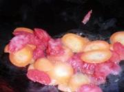 <br/>锅热油,放入香肠、胡萝卜,快速煸炒。</li></ul><ul><li>4