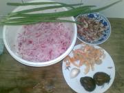 <br/>萝卜切丝,用盐腌一下,挤水,挤出的水备用香菇,香肠,干虾仁切丁,葱蒜头切末。</li><li>2