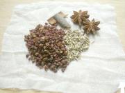 <br/>准备一块纱布,将花椒、茴香、八角、大料包好。葱切段、姜切片、水发木耳。</li><li>2