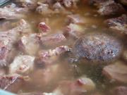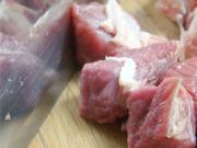<br/>先将肉切成条状,然后切块。锅内加凉水,放入肉块。烧开后撇去浮沫。</li><li>3