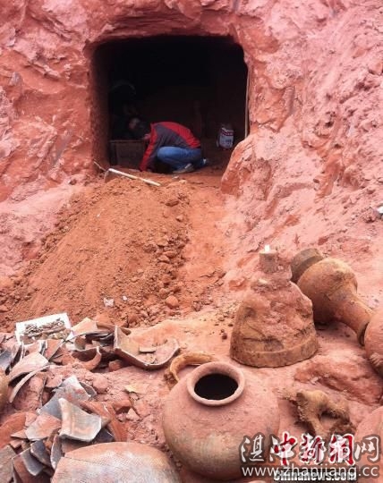 四川一教学楼拆迁 挖出东汉墓穴内摆满文物(图)