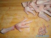 <br/>把鸡脚的趾甲去掉,斩成两段。</li><li>3