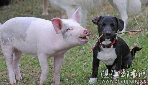 英国小猪把自己当狗 与小狗交友形影不离 2009年10月,英国有一只小猪由于出生时发育不好,体弱多病,它的主人欲将其杀掉,后来被动物慈善机构的人看到,把它送到了艾塞克斯郡的一家动物庇护站。它是英国大白猪和杜洛克猪的杂交品种,预期寿命为10年,现在它已经5周大了,与动物庇护站的6只小狗一起追逐打闹,甚至跟它们睡在一起。