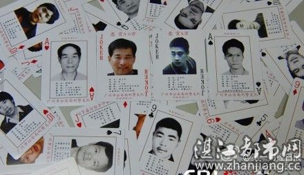 际在线消息:“通缉扑克,悬赏缉拿,举报请拨110。”记者2012年4月12日获悉,广州市公安局刑警支队创新通缉令方式,把筛选出来的54个有重案在身的通缉犯资料印制成一副特殊的扑克牌并免费派发给群众,希望以此获得更多线索。据了解,广州公安此举为全省首创,也是清网行动的后续。记者了解到,这 54名重案犯中,有三分之二以上的都涉嫌故意杀人。 记者看到,这副通缉扑克整体是灰色色调,由在逃嫌疑人的头像、基本信息、警方报警电话组成,其中“大小王”上明确了悬赏金额。记者注意到,整副扑克牌全部都是男性通缉犯,而2009年涉嫌杀人的公安部A级通缉犯尚少杰被印在“大王”上,并明确了悬赏金为30万。印在“小王”位置的是一名无名氏,案别是持枪抢劫杀人,立案单位则是刑警支队,悬赏金额为5万。