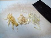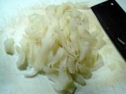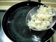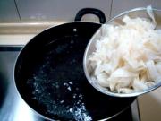 2、散丹不要切得太细,因为这种原料在汆烫时最易缩水。汆烫时,水要沸腾再下入散丹,水再次烧开要立即捞出,否则汆烫过火口感不好。