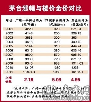 近日,记者对高端酒代表茅台近十年来的售价数据进行收集整理发现,茅台十年来的价格涨幅超过广州一手房售价涨幅。不仅茅台价格连年攀升,贵州茅台(210.18,0.00,0.00%)股 价也牛势汹汹,2001年8月贵州茅台挂牌上市每股以31.39元发行,算上分红送股的因素,10年时间里贵州茅台股价较其发行价足足上涨了55倍以上。 股民中流传一句话:“炒茅台酒胜过炒楼,赛过炒金”。而经销茅台的经销商,也是赚得盆满钵满,据一资深白酒经销商黄文(化名)向记者透露,一个地级市的茅 台经销商,一年的配额是2吨,到年底净利润达到500万。