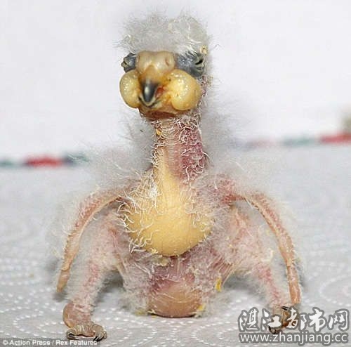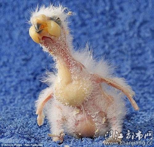 如图所示,这只鹦鹉浑身毛发稀少,其貌不扬,因此它被戏称为“外星鸟”或小火鸡。但即便如此,动物园的饲养员们还是精心地照顾着它。在尼尔森出生后的4周,它待在孵卵器中被细心看护。