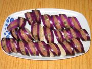 <br/>长茄子去头和蒂,斜刀切片,一刀切断一刀不切断,将肉馅夹入刀口中制成茄夹。</li><li>3