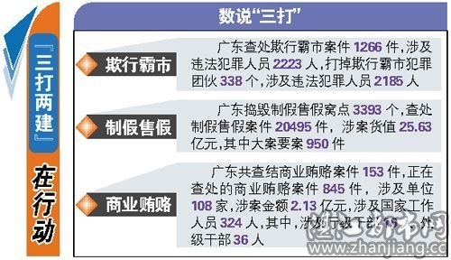 广州把整治出租屋纳入“三打”重点工作,粤北山区开展打击非法采矿行动,粤西突出打击鱼霸、沙霸、林霸、菜霸、村霸等。其中很典型的是湛江市徐闻县打击了肉霸,全县鸡肉价格降了3元钱。