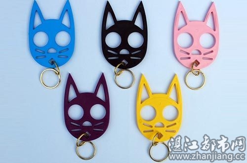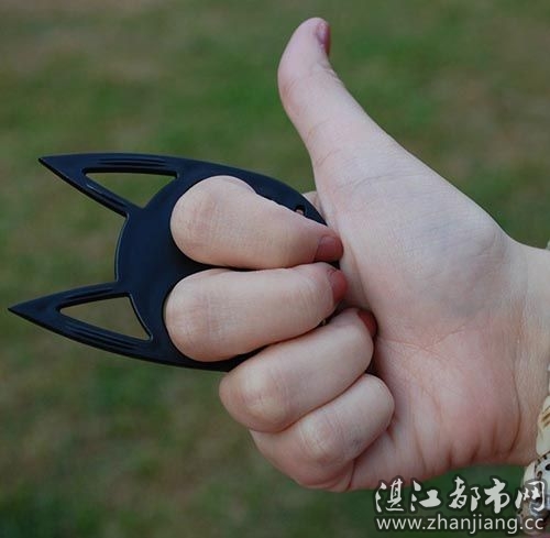 这个名为cat keychains的小猫钥匙圈看起来非常可爱,不过在它可爱的外表下面,却暗藏杀机。只要将手指穿过它的两只眼睛,立刻变成一把具有防御功能的手指虎,尖尖的耳朵即刻化为凶器。每个售价6美金