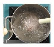 锅里倒入牛肉与水, 大火煮7分钟左右,直至沸腾,转中火煮30分钟左右后, 放入俏头续煮30分钟左右。</li><li>2