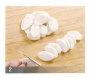 <br/>白米糕斜切成长4cm 厚0.2cm 左右的片。