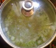<br/>锅里加水待滚了以后放入萝卜片、冻豆腐、蒜苗、洋葱。</li><li>12