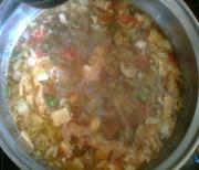 <br/>过一阵后加入炒好的西红柿茄子和炒好的羊肉丁,品尝一下味道,少什么再加入一点调味,马上熟了放入其余的蔬菜。</li></ul><ul><li>13