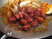 <br/>热放四汤匙菜油,油热放五六汤匙砂糖,锅加热至糖开始溶化变色,倒入排骨迅速翻匀;倒入调好味的汁,翻几下,盖锅盖,焖几分钟就可以了,我的排骨块头不大,时间不需太长,再加水淀粉勾芡,浇几滴麻油,大火收汁成。</li><li>3