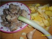 <br/>排骨斩小段下葱姜料酒煮熟,土豆切滚刀块。</li><li>2