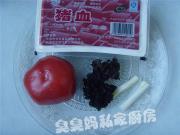 <br/>将猪血切薄片,番茄切片,黑木耳泡发洗净撕小朵。</li><li>3