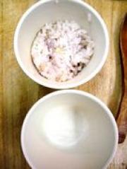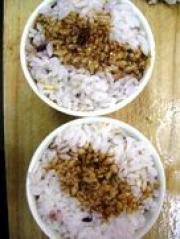 杂粮米饭 适量<ul><li>1油锅热后放入蒜末,猪肉,炒至变色后放入姜末,酱油,老抽,料酒,豆豉,炒好后盛出。</li><li>2