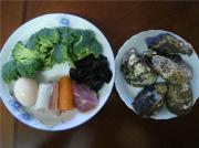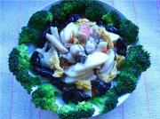 西兰花、木耳、红萝卜、猪肉少许