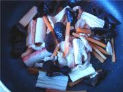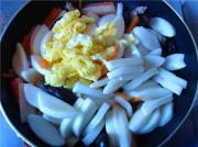 <br/>热锅加少许油,依次倒入红萝卜、肉丝、木耳、蟹柳翻炒,而后加少许盐。</li></ul><ul><li>7